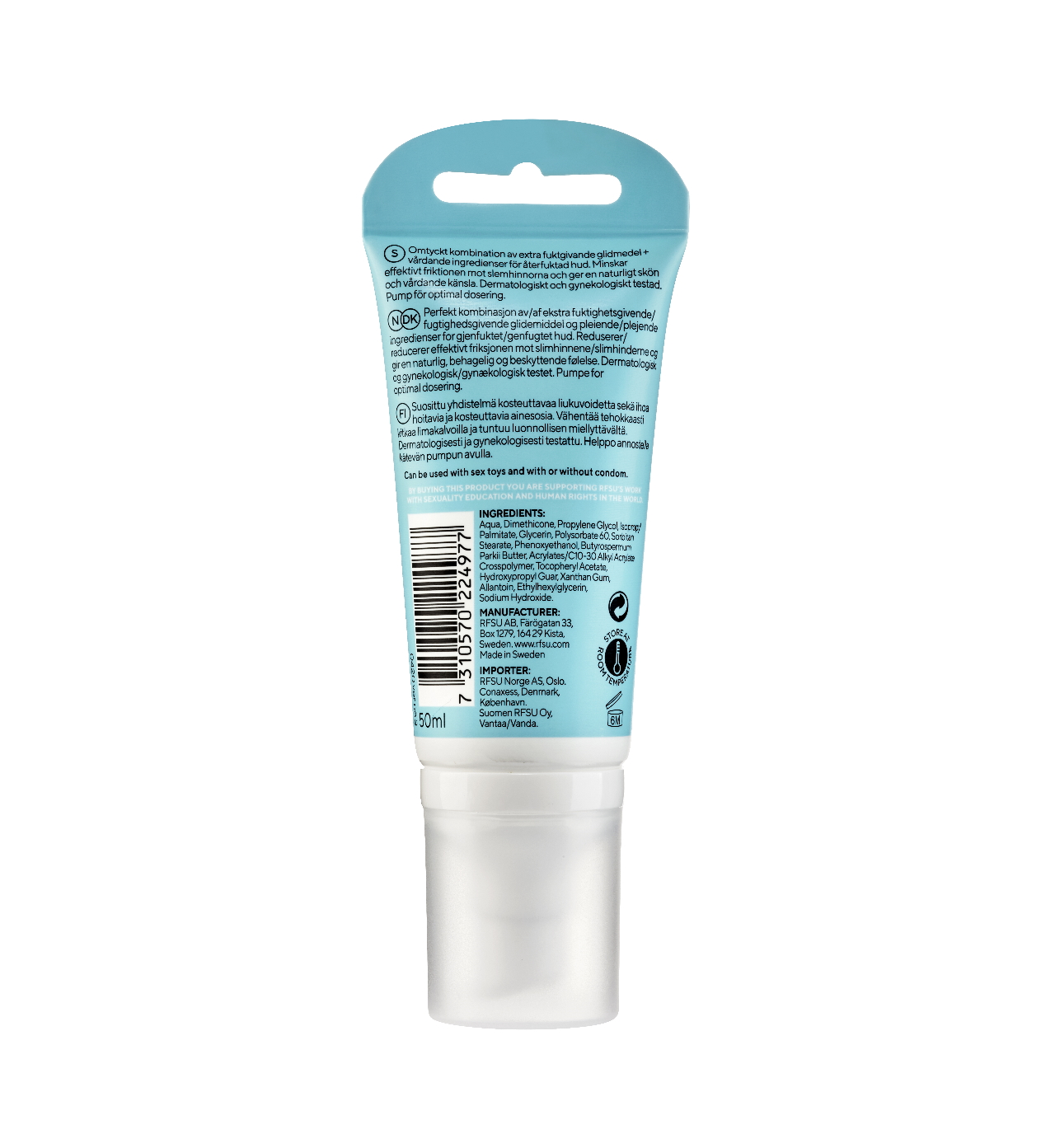 We recommend using a silicone-based lubricant, as it does not evaporate like water-based lubricants and provides extra long-lasting lubrication. RFSU sells Klick Supreme Glide which is a silicone-based lubricant and can be bought at Apoteket.