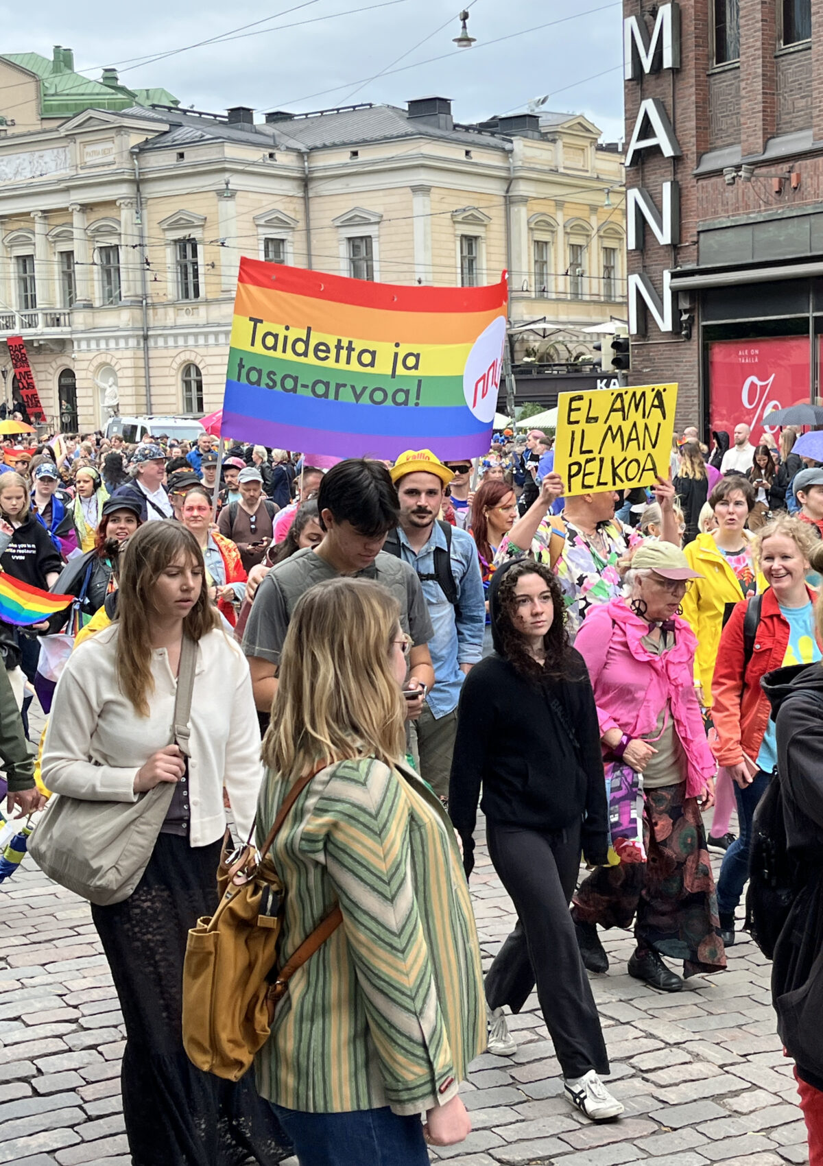 Maria Uusi-Rauva huomauttaa, että homoseksuaalisuus on edelleen laitonta joissain päin maailmaa, eikä taistelu LGBTQIA+- oikeuksien puolesta voi pysähtyä.