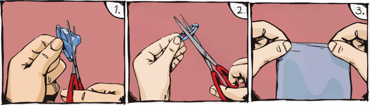 2. Leikkaa ensin auki kondomin pää ja sitten sen sivu.