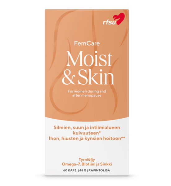 RFSU Moist & Skin on kehitetty erityisesti vaihdevuosissa oleville ja ne jo ohittaneille naisille. Ravintolisän koostumus on räätälöity naisille, joilla esiintyy silmien, suun tai intiimialueen limakalvojen kuivuutta tai ihon kuivumista ja jotka haluavat säilyttää hiukset ja kynnet normaaleina.