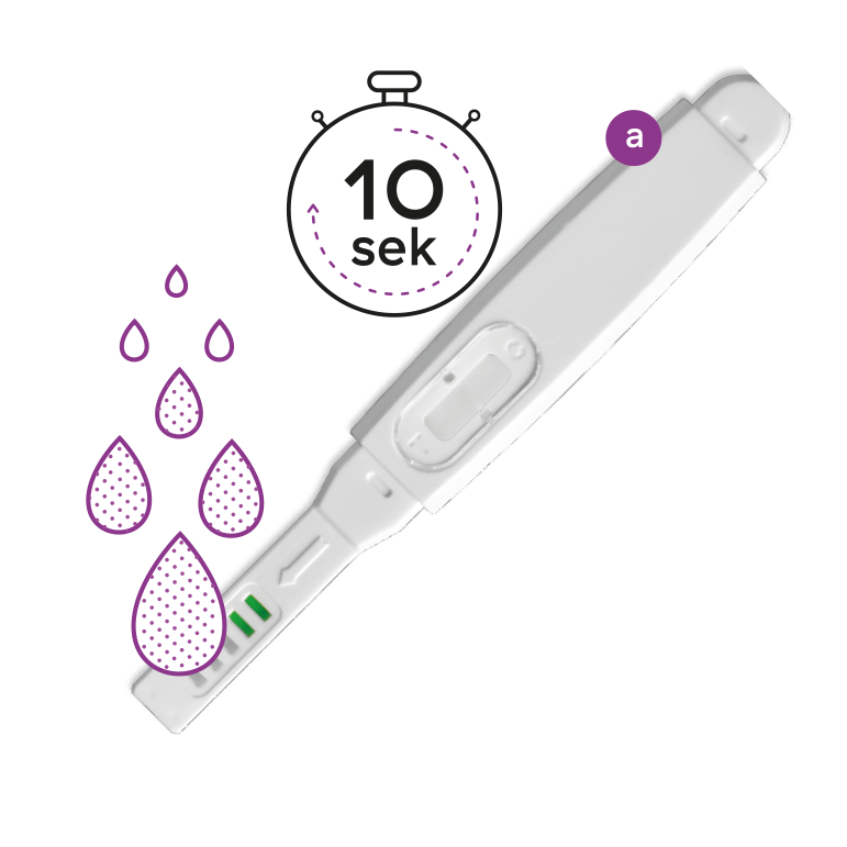 Vent 1-5 minutter før du leser resultatet og la testen ligge helt i ro. Når testen begynner å reagere, blir hele resultatvinduet lyserosa.