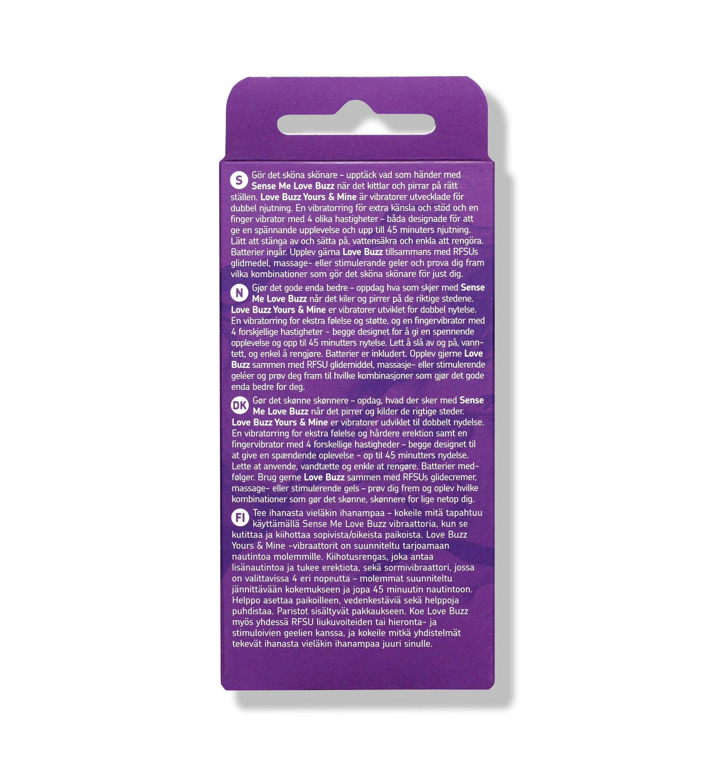 Prøv å bruke Love Buzz sammen med RFSUs glidemiddel, massasje- eller stimulerende gel, og prøv deg frem til hvilke kombinasjoner som gjør det deilige enda bedre for akkurat deg. Kan brukes med kondom. -