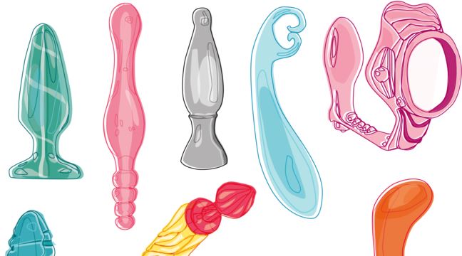 Noen eksempler på vibratorer/dildoer (det finnes også versjoner uten vibrator og ulike modeller kan se svært annerledes ut):