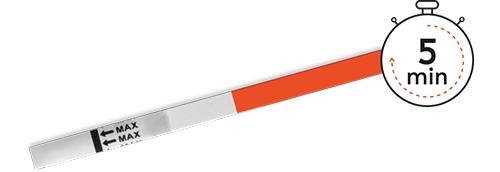 Vänta i 1-5 minuter innan du läser av resultatet och låt teststickan ligga helt still. När teststickan börjar reagera färgas hela resultatområdet ljust rosa.