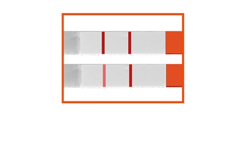 Heikko punainen viiva muovinauhan alla tai vieressä voi olla värijäämä ja näyttää viivalta. Viiva, joka näyttää testitulosta, on lähempänä kontrollialuetta ja muovin yläpuolella testialueella. Mitä lähempänä tulevien kuukautisten alku on, sitä varmempi on testitulos.